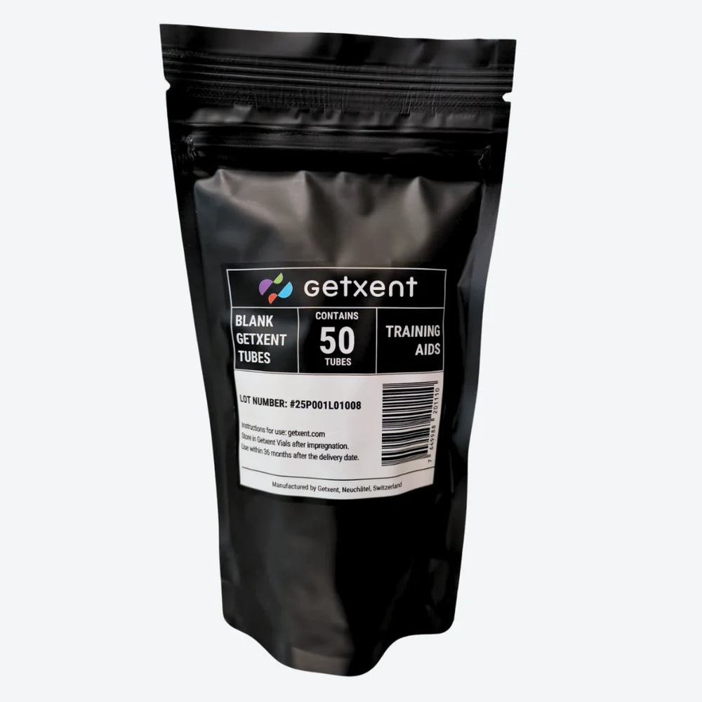 Getxent trubiņu patentētā tehnoloģija nodrošina drošu un efektīvu veidu, kā apmācīt meklēšanas suņus reālos apstākļos, izmantojot 100% reālu smaržu.