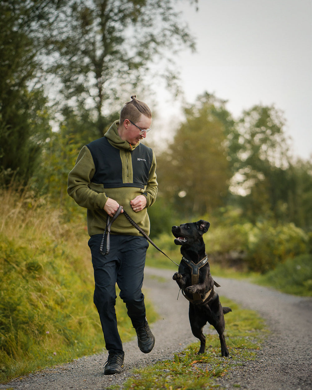 Džemperis HZ vīriešiem ir ideāli piemērots aktīvai ikdienai ar suņiem. Pastiprinātais audums augšdaļā un uz piedurknēm samazina nodiluma risku, rīkojoties ar suni.